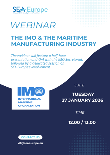 Van SEA Europe ontvingen we de aankondiging voor een webinar op 27 januari waarin de samenwerking tussen de koepel van Europese maritieme maakbedrijven en IMO nader toegelicht wordt.
