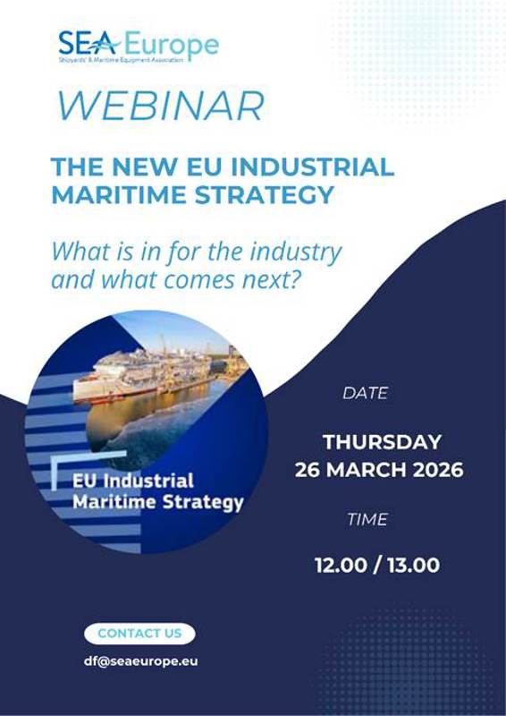 What is in for the industry and what comes next? On Thursday 26 March SEA Europe organises a webinar about the newly published European Industrial Maritime Strategy. Send your request for registration to df@seaeurope.eu before March 23. After registration you will receive the Teams link.